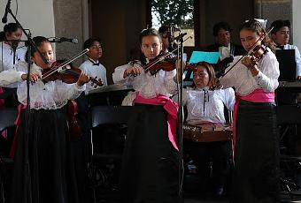 Zinacantepec, Estado de México.- Como parte del programa Acércate un Miércoles a la Cultura, cuya sede es el Museo Virreinal de Zinacantepec, la Orquesta Típica Infantil-Juvenil del Estado de México “Medrano” presentó un programa integrado por piezas mexicanas como Popurrí itsmeño, Rondinella, Huapango de Moncayo, Granada, Tierra mestiza, Guadalajara y Balajú.Esta agrupación musical está dirigida por la profesora María de los Ángeles Medrano, integrante de una familia de músicos, quien se ha dedicado a rescatar la enseñanza musical de algunos instrumentos como el salterio mexicano, la marimba chiapaneca, el violín, el bajo y las guitarras tradicionales.Conformada en el año 2017, esta orquesta cuenta con el reconocimiento por su labor, al preservar y difundir la herencia musical de nuestro país, tiene integrantes de siete a 14 años de edad, oriundos de Lerma, Metepec, Ixtlahuaca, Zinacantepec y Toluca.La profesora Medrano ha creado varios grupos musicales de todas las edades y en este caso, busca educar a niños y jóvenes en el arte y la cultura, impulsarlos a que experimenten momentos de gozo, solidaridad y disciplina, amor y aprendizaje a través de la música. Para conocer la programación del AcéRcaTE un Miércoles a la Cultura, pueden consultar las redes sociales Facebook/CulturaEdomex y Twitter@CulturaEdomex.
