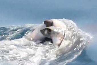 En un reciente viaje a la costa del sur de California, un grupo de observadores de ballenas se topó con un espectáculo poco común y desgarrador. Cuando pasaba cerca un grupo de delfines mulares, su capitán, Dave Anderson de Whale Watching Safari, vio un delfín adulto que llevaba el cuerpo de una cría muerta en su aleta dorsal - al parecer dispuesto a no desprenderse de su hijo sin vida.