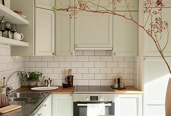 Agradable y acogedor el apartamento que os traemos hoy, con una distribución abierta y una decoración en colores pastel empolvados.