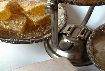 Delicias turcas (turkish delight, lokum) Dificultad, así de primeras:de cero a cien, dos si te lías al exprimir limones Sabor: a limón, pistacho y asaltacamas exóticos Receta de inspiración: Turkish delight, del libro Mrs. Beeton´s Cookery Book, Isabella Beeton. INGREDIENTES (para unas 25 piezas de 3x3 cm)