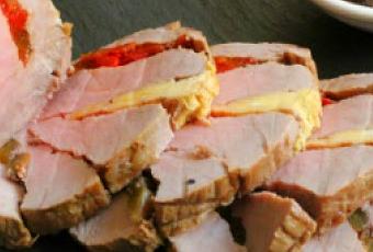 Dejamos enfriar antes de cortar, teniendo cuidado para que se vean los distintos rellenos en cada filete como muestra la imagen.