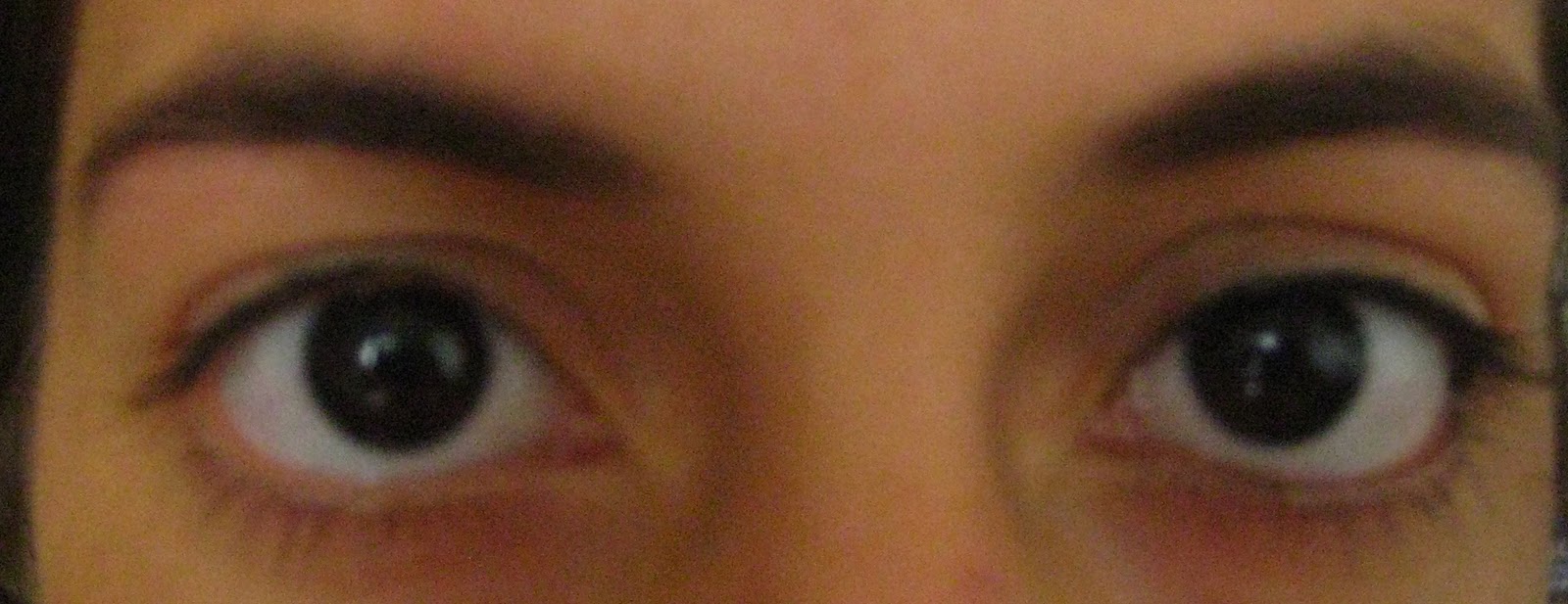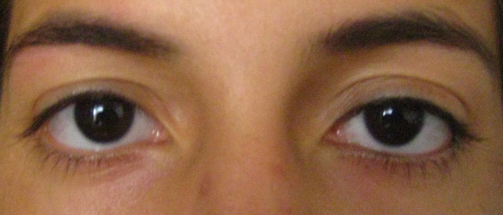 El ojo izquierdo no tiene delineado mientras que el izquierdo si y noten lo sutil que es el efecto de hacer ver el ojo mas definido y las pestanas mas tupidas.Me encanta!!!