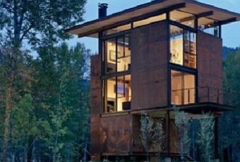 El estudio Olson Kunding Architects es el autor del diseño de un refugio en el estado de Washigton, que bien puede situarse en el delta de Paraná o cercano al curso de un rio. La cabaña de 100 m2 esta construida en acero y elevada del terreno boscoso a través de columnas metálicas.