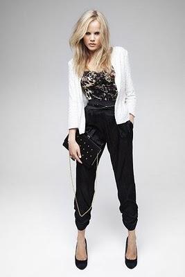 Lo mismo me pasaria con este estilismo. Sobre los pantalones diria que no soy lo suficientemente rock-star como para llevarlos puestos, el bustier es "demasiado" Madonna, y la chaqueta "demasiado" blanca....consecuentemente, problemas para limpiarla luego, pero lo vuelvo a reconocer, tal y como han vestido a la modelo, ya no me parece tan mal.
