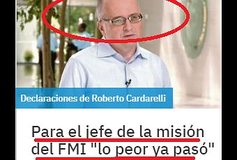 El italiano Roberto Cardarelli, enviado del FMI a la Argentina, consideró este lunes que "Lo peor ha pasado. El crecimiento debería mejorar y la inflación debería bajar en los próximos meses", encendiendo todas las alarmas para quienes ya escucharon esas palabras por parte de representantes del gobierno nacional en anteriores ocasiones.
