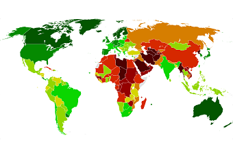 El Índice de democracia (2010) es una clasificación que realiza el grupo económico británico The Economist, de orientación liberal. Se basa en una puntuación de 0 a 10, teniendo al país más cercano a 10 con un mejor desarrollo de esta forma de gobierno que el más retirado.Democracias plenas: 9 - 10 8 - 8,9Democracias defectuosas: 7 - 7,9 6 - 6,9 Sin datos