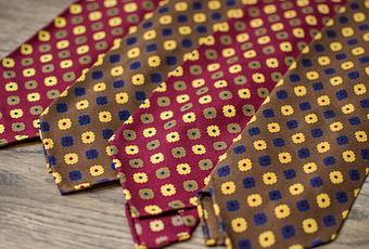 En construcción de 7 pliegues, de forma totalmente desectructurada con la que se puede ver el trabajo completo del rollino a mano o los pliegues que conforman este tipo de configuración, y que ofrecen una caída y sensaciones difícilmente vistas en una corbata tradicional.