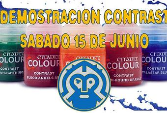 "El sábado 15 de Junio por la mañana y por la tarde hasta las 20:30, haremos una demostración de las nuevas pinturas Contrast de Games Workshop.