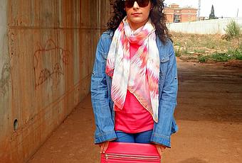 He combinado los jeans y la camisa vaquera con una camiseta básica en color rosa flúor. El clutch y las sandalias son del mismo color y le dan al look el toque primaveral que necesita.