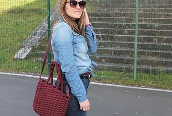 En el look de hoy apuesto por ambas opciones, camisa denim más clarita con jeans más oscuro y jugando con las texturas con botones y bolsillos en las camisas que hacen un look más vistoso. Aporto color con sweater de cuello cisne en canalé en color burdeos a juego con el bolso de cordón trenzado (reciente adquisición de las rebajas). Sneakers y look completo