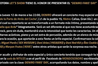 "deniro fan´s day" /// concierto electroacustico con invitados especiales en la sala "el perro de la puerta de atras del coche"/// jueves 12 de marzo, 22:00 horas‏