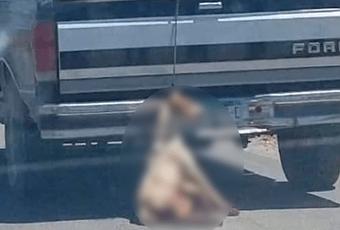 En un vídeo que el mismo tomó se puede ver como el conductor sin ninguna señal de humanidad arrastra a un perro por la carretera mientras el pobre animal va sufriendo por la carne que se le va desprendiendo debido a la fricción.