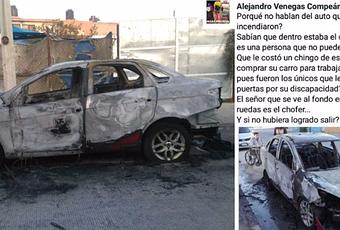 Tal es el caso la denuncia de un usuario, en la cual, explica que el auto de un trabajador Uber, quien no puede caminar y debe utilizar silla de ruedas, fue incendiado mientras este se encontraba dentro.