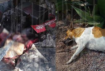 Sin embargo a tan solo 50 metros del primero perro se encontró una perra la cual habría sido muerta de forma sangrienta con claras muestras de tortura y con las orejas cortadas.
