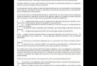 Este documento, cuyo borrador doy a conocer en este momento, tiene la clara pretensión de ser usado –de acuerdo con los planes de la ultraderecha USA y otros enemigos de Cuba– para ser usado como instrumento de supuesto cuestionamiento al sistema electoral cubano, particularmente en el VI Foro de Jóvenes por la Democracia, en el marco de la próxima Cumbre de las Américas, así como en la Coalición Juventud y Derechos Humanos frente a la Corrupción y Transparencia, en el que la citada mercenaria actuará como una de las coordinadoras. Este documento servirá como base a un pretendido documento crítico que ella y sus aliados buscan elaborar para entregar al señor Almagro, liderzuelo de la OEA, para invocar la aplicación de la carta Democrática contra Cuba y Venezuela o, al menos, lograr el desconocimiento regional de estas dos naciones.