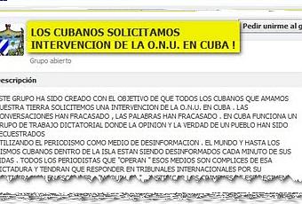 Norelys Morales Aguilera.- Hace unos días, un quintento de contrarrevolucionarios radicados fuera de Cuba, principalmente en Miami, han iniciado una sucia campaña anticubana en Facebook, creando un grupo de debate titulado: “Los cubanos solicitamos la intervención de la ONU en Cuba”.Varios miembros de Facebook han rechazado el grupo, pero hoy han sido denunciados los autores de la provocación en el sitio Blogueros y Corresponsales de la Revolución, http://bloguerosrevolucion.ning.com por Percy F. Alvarado.