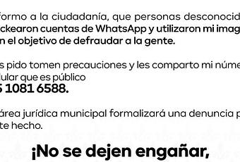 Ante este hecho, el gobierno municipal hizo un llamado a la ciudadanía para evitar caer en posibles fraudes, recomendando no confiar en mensajes inesperados que involucren la imagen de funcionarios públicos. También instó a la población a no compartir información personal ni realizar transacciones sin verificar la autenticidad del contacto.