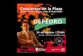 Depedro se suma a los conciertos que se están haciendo en San Sebastian de los Reyes de Madrid.La esperada llegada de Depedro a San Sebastián de los Reyes será en el marco de los conciertos en honor del Santísimo Cristo de los Remedios. La llega de Depedro a la Plaza de la Constitución este domingo será un acierto y es que llega a San Sebastián de los Reyes en horario matinal. Con las canciones de su disco Érase una vez y todo el material previo donde encontramos unas canciones que casi son de dominio público presentará un repertorio para pasar la mañana en un gran entorno.