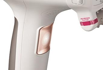 * Un sensor de contacto, que nos garantiza que solo se emitan pulsos de luz cuando el aparato está en contacto con la piel.