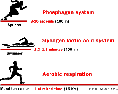 En cambio si realiza una prueba 100 metros braza con una duración entre más de 30 segundos y 2 minutos el sistema que utilizará será el sistema anaeróbico láctico. Utilizará como combustible el glucógeno.