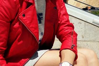 Hi everyone!Happy monday after this bridge!, I was eager to show this look because I had never encouraged this style of sporting prints, but a sweatshirt dress seemed the most original and feminine top that had seen in this this particular style, so I decided to adapt it to me: with a "perfect" red jacket touch by Mango (previously I used here), my watch Daniel Wellington with sporty strap, Rayban aviator sunglasses, wide ankle booties from Zara and coquettish black Mango bag The temperature was warm those days during the day, at least I could dress lighter (yes sun hasn't give me a single ray to tan, haha). Hope you like that look! Hugs!