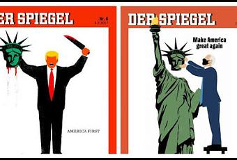 En una satírica portada del medio alemán Der Spiegel, el popular semanario retomó el concepto que había colocado en una edición del año 2017. En ese entonces, el artista cubano Edel Rodríguez había realizado un dibujo en el cual se veía a Donald Trump con un machete decapitando a la Estatua de la Libertad. La controvertida portada era la puerta de entrada a un duro artículo contra la administración Trump, que, entre otras cosas, prohibió el ingreso de viajeros de siete países de mayoría musulmana y encarceló a inmigrantes que ingresaron por la frontera sur, separando a niños de sus padres (más de 540 menores aún no han sido reunidos con sus progenitores). Al lado del Trump verdugo se veía la frase “America First” (América primero, o Estados Unidos primero).