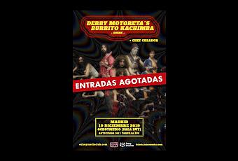 Derby motoreta's burrito kachimba están en alza y es que muestran la quinta esencia del rock andaluz y están llegando a dar conciertos que están siendo reseñados como los shows perfectos. Chef Creador se suma a la noche para presentar sus hits y cerrar temporada. Dos proyectos colosos que se darán cita para quedarse con todo los fans en un show para el que no hay entradas.