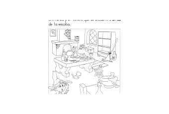 Colorea la pócima que está a la derecha de la vela, la pluma que está a la izquierda de la copa, la olla que esta adelante de la chimenea y el veneno que se encuentra atrás de la escoba.