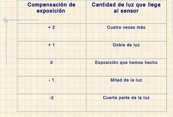 Compensación de exposición Cantidad de luz que llega al sensor + 2 Cuatro veces más + 1 Doble de luz 0 Exposición que hemos hecho – 1 Mitad de la luz -2 Cuarta parte de la luz