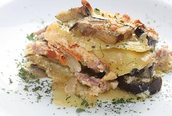 Pero volvemos a la receta; habrá algo mas típico en Grecia que la Moussaka? Pues no, entonces esta fue la receta eligida, espero que os guste :)ingredientes para dos personas;2 patatas medianas1 berenjena200g carne picada1/2 cebolla1 diente de ajo10 tomates cherry1 oja de laurel1/8 cucharadita canelanuez moscadasal y pimienta2 huevos20g mantequilla20g harina170ml leche50g queso ralladoaceite de olivaCortamos la berenjena en lonchas finas, las sazonamos y dejamos aparte unos 30minutos. Despues calentamos un poco de aceite en una sartén y freímos las berenjenas de ambos lados unos 30 segundos. Despues freímos tambien las patatas peladas y cortadas en lonchas finas unos 10 minutos. Ahora calentamos un poco de aceite en una olla y rehogamos la carne, la cebolla picada y el ajo. Añadimos tambien los tomates cortados en cuartos. Sazonamos al gusto con canela, sal, pimienta y nuez moscada y echamos la oja de laurel. Dejamos todo en la olla a medio fuego unos 5 minutos, retiramos del fuego y añadimos 1 huevo al relleno.En otra olla dejmas derretir la mantequilla, añadimos la harina (sin dejar de remover) y poco a poco vamos echando la leche. Seguimos removiendo hasta obtener una Béchamel espesa. Sazonamos con sal, pimienta y nuez moscada al gusto, retiramos del fuego y añadimos el otro huevo y un poco de queso rallado a la salsa.Ahora engrasamos un molde para el horno y colocamos la mitad de las berenjenas y las patatas dentro. Echamos un poco de queso y sazonamos con un poco de sal y pimienta. Despues vertimos la carne picada por encima y al luego vamos colocando la otra mitad de las lonchas de berenjena y patata. Vertimos la Béchamel y echamos el resto de queso por encima y horneamos nuestra Moussaka unos 30-40 minutos a 180 grados en el horno precalentado.