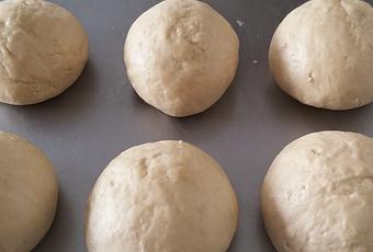 Preparación: En un bol o en la amasadora poner el agua, la levadura, el azúcar, la mantequilla y la harina, reservando unos 50 gr. Amasar y cuando lleve unos 5 minutos de amasado añadir la sal y volver a amasar y si está demasiado pegajosa añadir la harina reservada o incluso es posible que haya que agregar algo más. Una vez hecha la masa, tapar el bol con papel film y dejar reposar en un lugar cálido durante al menos una hora o si se desea en la nevera hasta el día siguiente. Para hacer el relleno de manzana mezclar las manzans peladas y cortadas en daditos con un poco de zumo de limón para que no se ennegrezcan, el azúcar, la canela y la almendra molida. Pasado el período de descanso dividir la masa en 12 partes iguales, bolear y volver a dejar reposar unos minutos para que la masa haya perdido la fuerza y la podamos trabajar bien. Entonces con un rodillo y sobre la superficie ligeramente enharinada estirar cada bola, dando forma redonda. Una vez formados los círculos colocar en el centro o bien una cucharada del relleno de manzana o 1 cucharada de cabello de ángel. Envolver la masa alrededor del relleno y bolear de nuevo con cuidado. Colocar en una bandeja de horno con papel y pincelar con huevo batido. Dejar fermentar en un lugar cálido y sin corrientes de aire durante al menos una hora. Entonces volver a pincelar con huevo y cocer en el horno a 185º C durante 15-20 minutos.