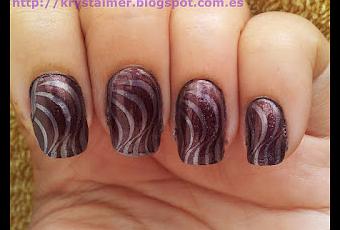 Quería estrenar mi primer esmalte China Glaze que recibí hace sólo unos días... Es el esmalte Avalanche lila de base... un color especial que me ha gustado mucho, muy clarito... He estampado el dibujo con la placa Bundle Monster 210 y el esmalte Yes Love 434 granate.
