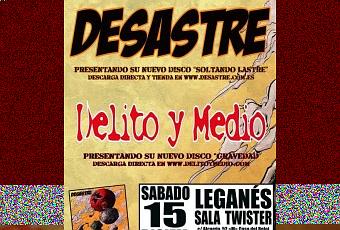 El próximo Sábado estaran descargando en Leganes (Madrid) DESASTRE y DELITO Y MEDIO a partir de las 22 horas en la Sala Twister con entrada gratuita.