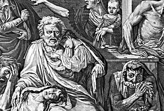 Grabado alegórico a los sufrimientos del pueblo español en la Guerra de la IndependenciaEn la Guerra de la Independencia no sufrió Talavera solamente los efectos de la gran batalla que lleva el nombre de nuestra ciudad, sino que las idas y venidas de los ejércitos franceses provocaron gran cantidad de víctimas, daños en el caserío y una gran miseria posterior debida a su rapiña insaciable.