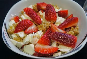 DESAYUNO CON AVENA, QUESO FRESCO Y FRESAS