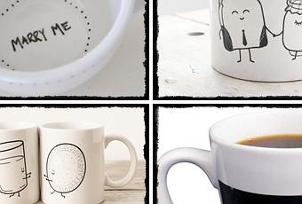 La primera taza es de etsy, pero puedes customizar tu propia taza con rotuladores especiales para porcelana (que puedes comprar aquí o aquí, entre otros). ¡Imaginaros la cara de vuestra pareja cuando termine cuando descubra el mensaje que se esconde en el fondo de su desayuno!
