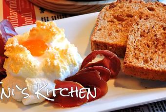 Hoy un desayuno de cuchillo y tenedor. Muy rico y sin grasas, super saludable y mega delicioso^^Semanas pasadas circulaba un video en Face, donde se preparaban unos huevos muy raros con crujiente de bacon y tostadas con mantequilla, bueno bueno...siempre improvisando pero siempre acertando, voy yo y preparo estos huevos muy raros pero con cecina de ciervo y tostadas integrales sin mantequilla. Si esto no es rico y saludable, pues dímelo tu! :P
