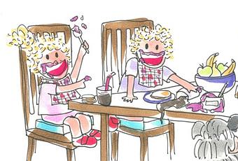 - De buena os habéis librado, se ríe mamá. De todas maneras, espero que tengáis más cuidado y no juguéis de esa manera con la comida. Y ahora, todos a desayunar!