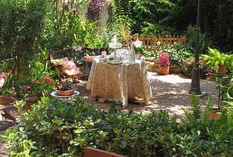 Este trocito de jardin está en la parte de atrás de la casa, es muy pequeñito, es casi más un patio que un jardin..... me siento muy afortunada de tenerlo y para mí es mi paraiso particular.....mi pequeño vergel, ya veis lo atiborrado de plantas que está....mi otra gran pasión.Lo disfrutamos muchisimo, sobretodo ahora con el buen tiempo
