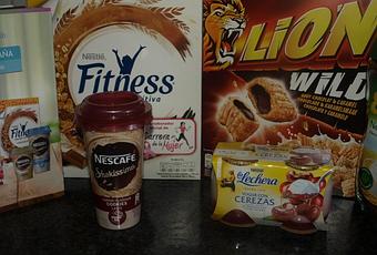 Los productos son:a) Cereales Lion Wildb) Cereales Fitness Chocolatec) Cereales Ekod) Yogur con cerezas La Lechera e) Nescafé Shakissimo Espresso.