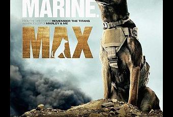 Cartel promocional de Max (Boaz Yakin, 2015), que narra la historia real de un perro de los marine que regresa de Afganistán tras perder a su guía en combate.