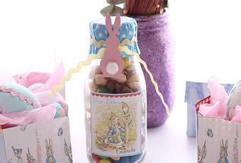 Para decorar utilice una capsula de cupcakes para la tapa, queda super bonita y para finalizar lo he atado con un lazo zig zag amarillo pastel, un adorno de conejito y etiquetas adhesivas que encontraréis a final de las fotos para descargar.