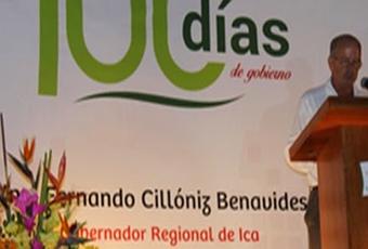 Gobernador Regional de Ica, dice que está haciendo las cosas bienEl Gobernador Regional de Ica, Fernando Cilloniz Benavides no admitió errores en el informe de los cien días de gestión; y reiteró el compromiso del agua grande para Ica.