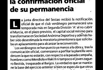 El Sestao se mantuvo en Segunda División debido al descenso del Real Murcia.