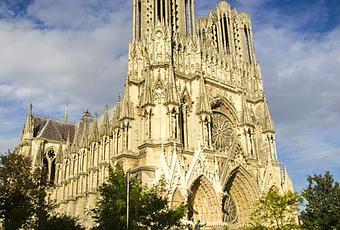 La Catedral de Reims, también llamada la Catedral de Notre-Dame en Reims, está situada en el río Vesle al este-noreste de París. Esta catedral fue el sitio de 25 coronaciones de los reyes de Francia, desde Luis VIII en 1223 a Carlos X en 1825. Incluida la coronación de Carlos VII en 1429 en presencia de Juana de Arco. Junto con las catedrales de Chartres y Amiens, Reims es un miembro de la ilustre tríada de las catedrales francesas de estilo Alto Gótico o Clasico construidas en el siglo XIII.