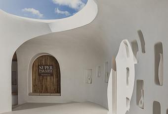 Los recovecos en las paredes reflejan un clásico motivo interior cicládico. Ahora, albergan funcionalmente bebidas o exhiben arte en cerámica local. Además, se jugó con la deconstrucción y reconstrucción de arcos, visible en los diseños de pérgolas, contornos de bares, escalones y el stand del DJ. Una experiencia totalmente nueva se descubre en el Super Paradise Beach Club.
