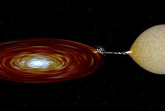 Las binarias de rayos X son sistemas estelares compuestos por un objeto compacto (que puede ser una estrella de neutrones o un agujero negro) y una estrella ‘normal’. El objeto compacto arranca materia de la estrella y la incorpora lentamente a su propia masa a través de un disco que se forma en torno a él. A este proceso se le conoce con el nombre de acreción. Tan sólo se conocen unas 20 binarias con agujero negro de una población estimada de unas 5.000 en la Vía Láctea.