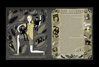 El repaso histórico que Ignotofsky hace de estas mujeres es cronológico, comenzando por Hipatia, de la que dicen fue una de las primeras mujeres que estudió y enseñó matemáticas; y termina con Maryam Mirzajani, una joven iraní matemática, galardonada con el premio más prestigioso del campo (la primera mujer en lograrlo), la Medalla Fields, pero que desgraciadamente falleció en 2017. Por el camino se da luz a científicas que tal vez para el público en general no sean muy conocidas, aunque sí hay nombres muy representativos como los de Marie Curie o Jane Goodall. Además todo se completa con algunos capítulos dedicados a distintos aspectos importantes, como los hitos en la historia de las mujeres dentro de la sociedad y la ciencia, los instrumentos presentes en los laboratorios, otras mujeres científicas destacables y un glosario de términos muy interesante para los que andamos algo perdido en según que materias.