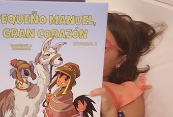 Estoy suscrita a Boolino, donde periódicamente me informan de libros que pueden gustarle a mis hijas, hay de todo, alguno que ya conocemos y otros que no habíamos oido hablar de él en la vida.Y eso fue lo que ocurrió con "Pequeño Manuel, gran corazón", la historia de un niño que se navegando en el Green Ocean, se encontrará con nuevos países y culturas, una historia en forma de comic, que en casa nos ha encantado.No se me había ocurrido nunca inculcarles el mundo de los comics, no se por qué, ya que yo era devoradora de Zipy y Zape, Carpanta o Rompetechos, y a ellas igual que a mi les ha encantado.