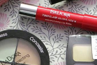 Descubrí la marca Isadora a través de un blog(ahora mismo no recuerdo cual) y me llamó mucho la atención así que comencé a seguirles en Facebook y tuve la suerte de que gané un sorteo de cinco productos a mi elección.Se trata de una marca sueca que venden en exclusiva en perfumerías Douglas.Me costó mucho elegir porque tienen unas cosas preciosas,tienen unas barras de labios muy bonitas,sombras de ojos espectaculares...es una marca muy completa y con colores y productos para todos los gustos.Al final me decidí por estos: Twist up blus & go,Twist up gloss stick,eye primer,paleta de correctores y paleta de sombras.Casi todo lo que necesito para un buen maquillaje(me faltaría base y máscara de pestañas)Me han gustado mucho todos los productos,me alegra haber escogido estos.A continuación pondré información sobre los productos y mi impresión.¿Habéis probado la marca Isadora?¿Que os parece?¿Que recomendáis?o si no ¿Que os gustaría probar?¡Muchísimas gracias por vuestras visitas y comentarios!¡Me hace mucha ilusión leeros!¡Un beso!